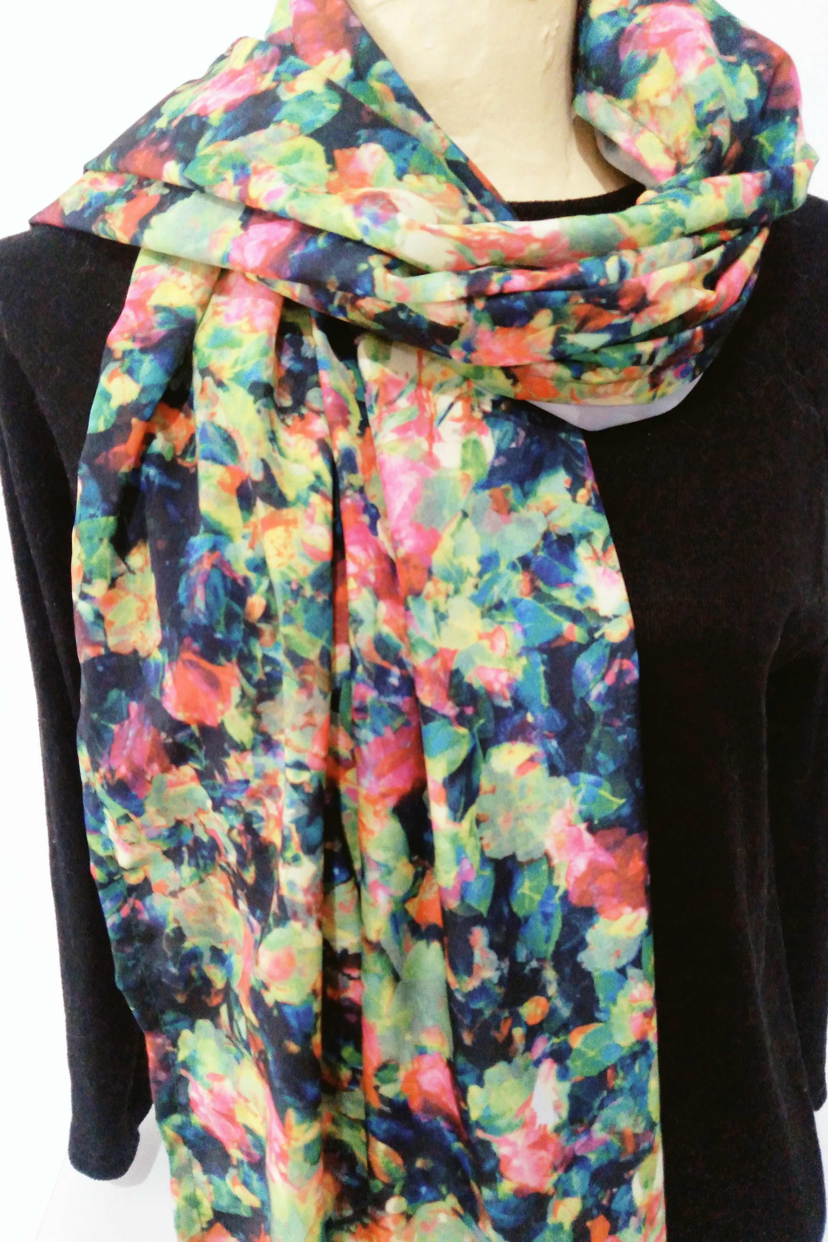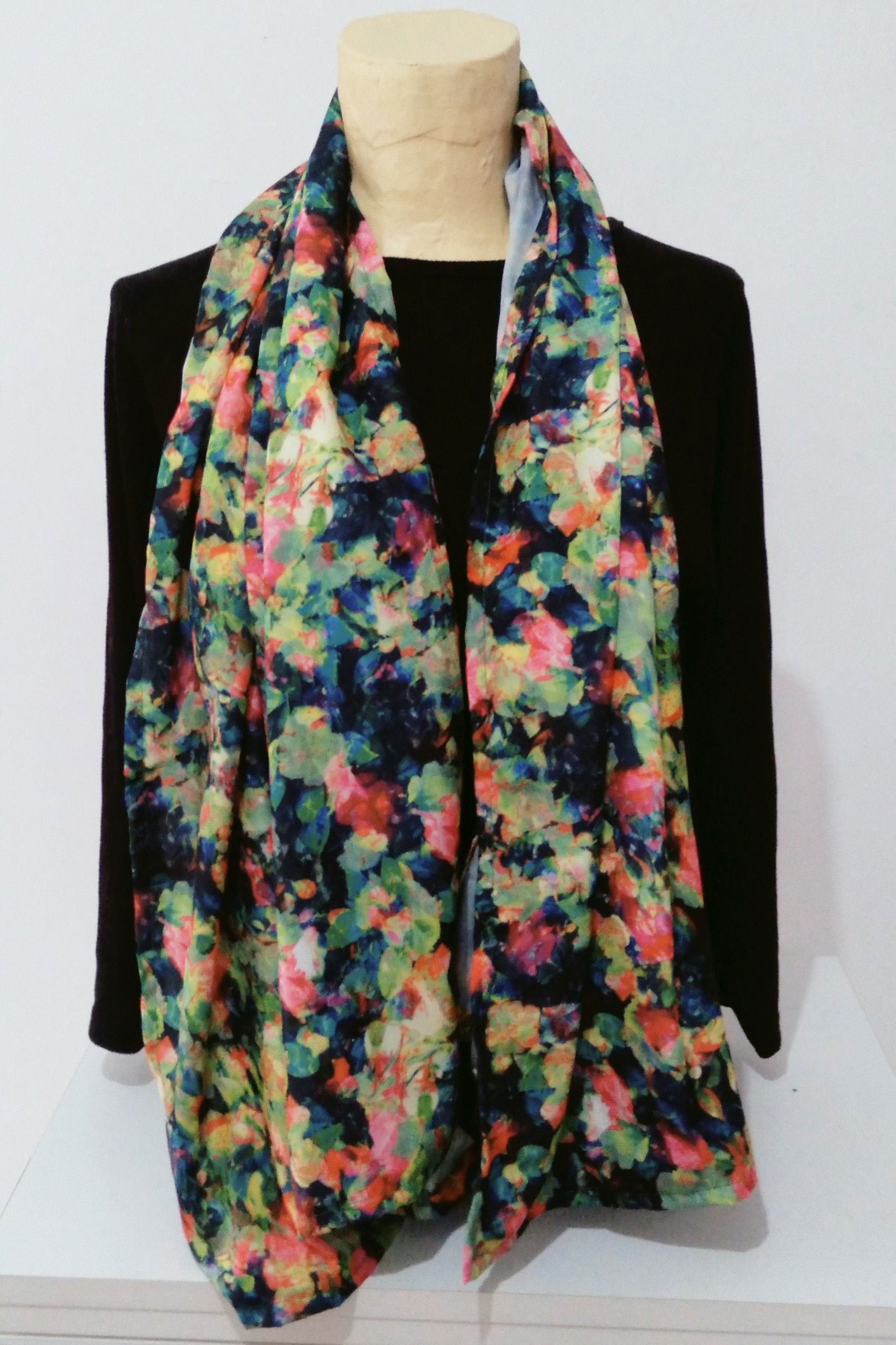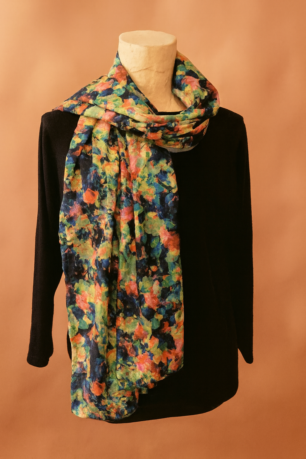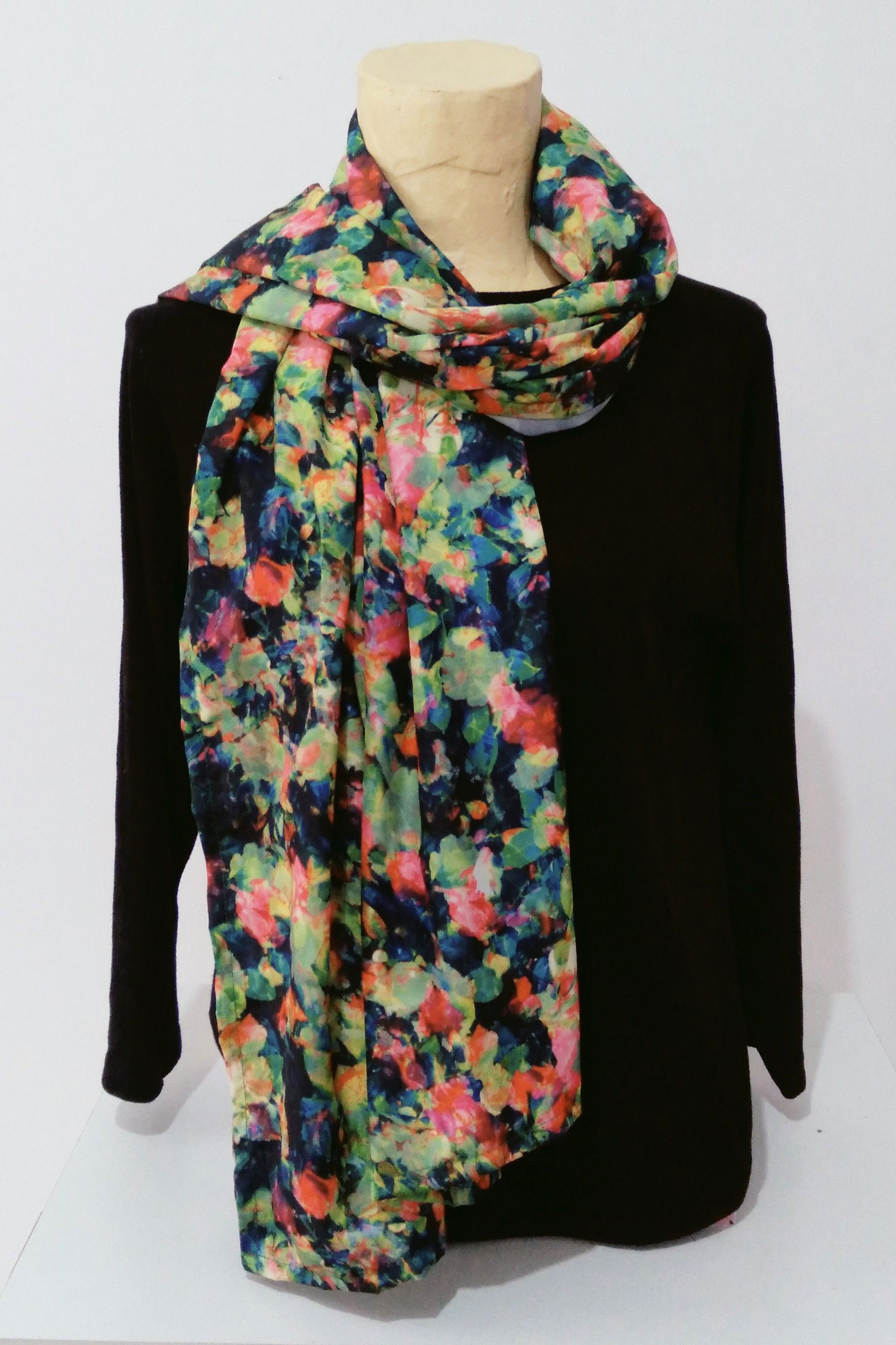 Confeccionado en tela suave y delicada de seda artificial, con un estampado abstracto que transmite dinamismo y originalidad.