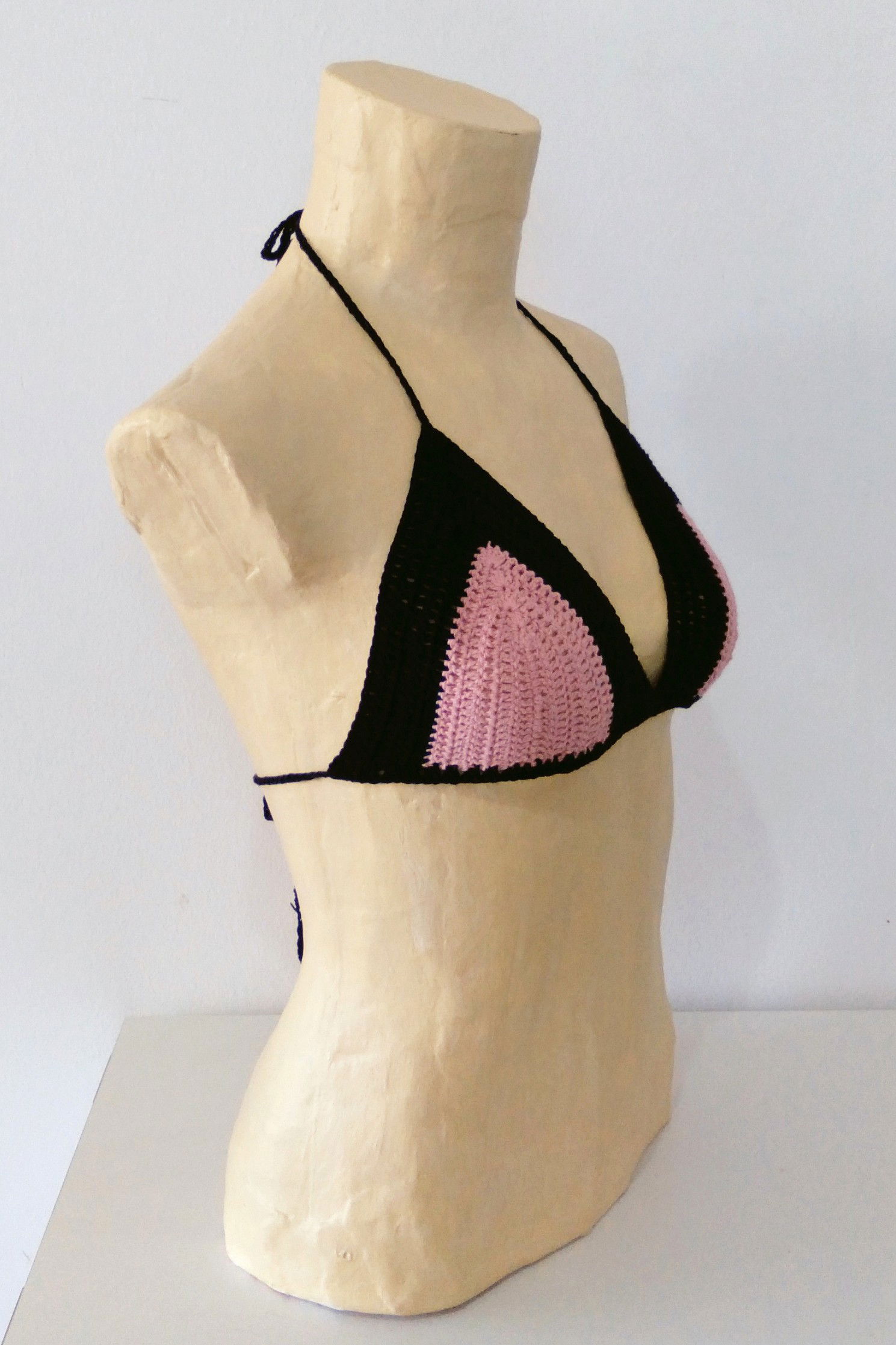 Tejido a crochet en hilo fino de algodón de 3 hebras, ofrece comodidad y firmeza con un diseño que realza la silueta.