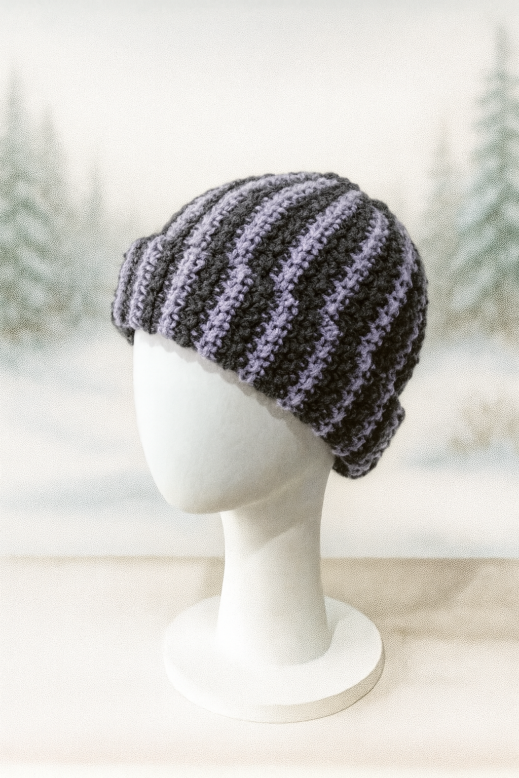 En tono niebla, un rayado exacto de lila muy clarito con gris oscuro que aporta un contraste sutil y elegante, evocando la calma de los días brumosos.