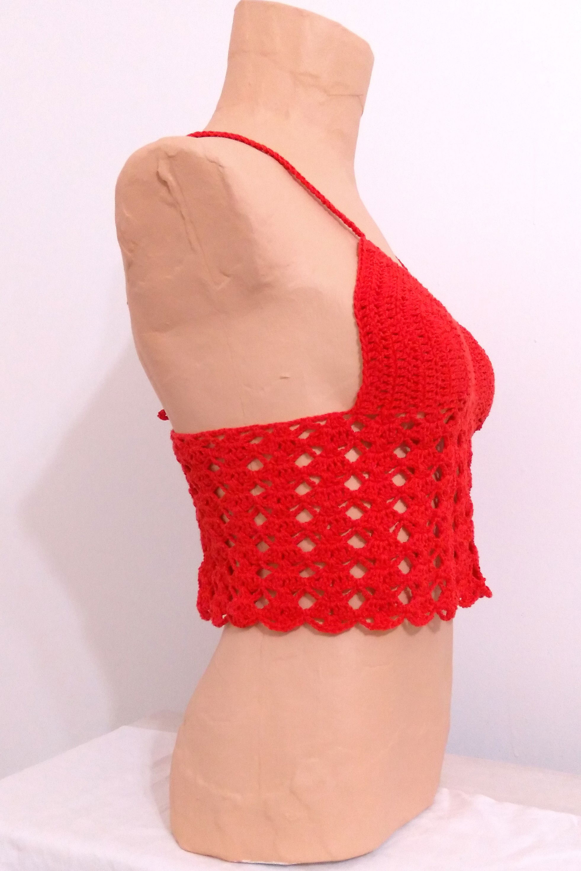 Tejido a crochet en hilo de algodón de 3 hebras, ofrece suavidad y frescura con un diseño que se adapta al cuerpo de manera natural.