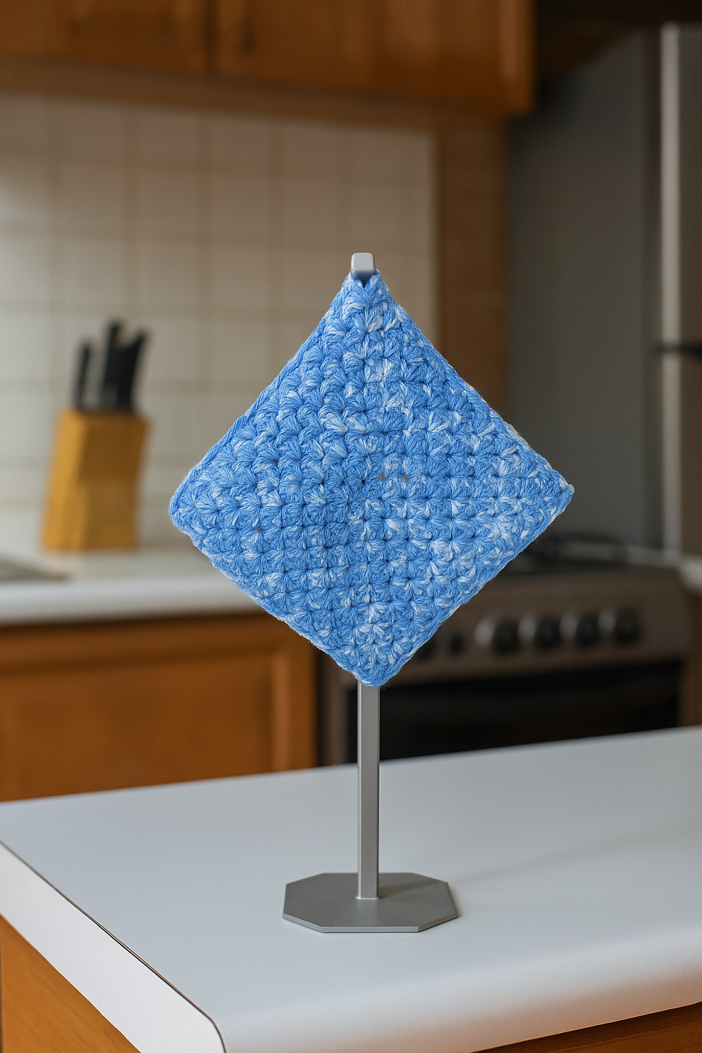 Podés usarla como agarradera, posa pavas o posa fuentes, con la seguridad y el estilo de lo hecho a mano.