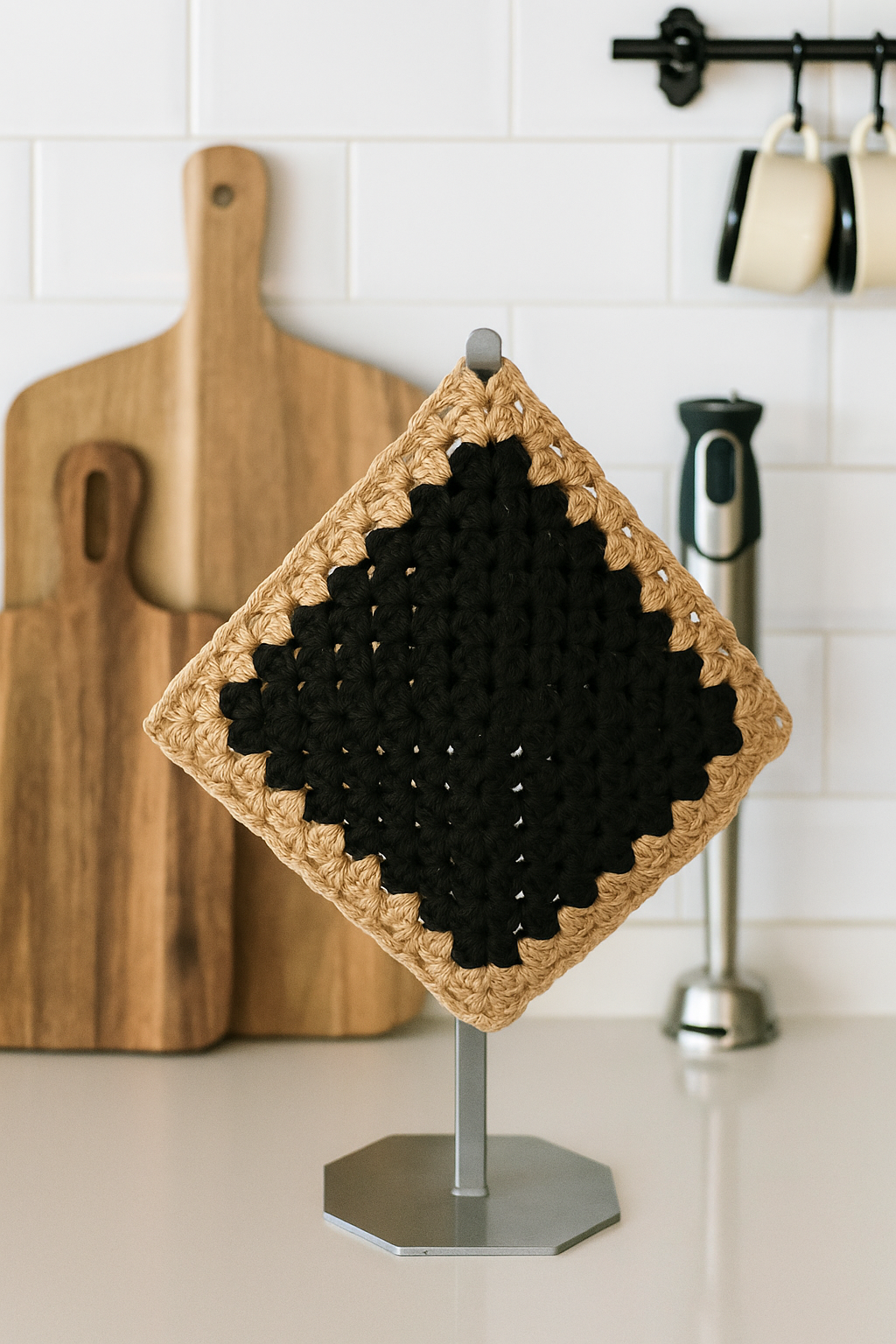 Podés usarla como agarradera, posa pavas o posa fuentes, con la seguridad y el estilo de lo hecho a mano.