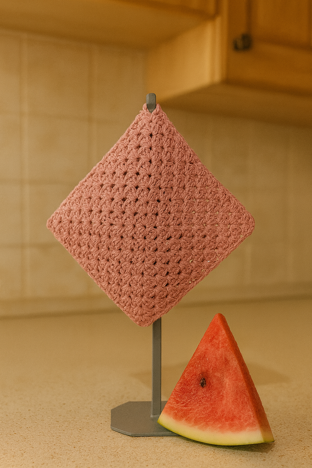 Podés usarla como agarradera, posa pavas o posa fuentes, con la seguridad y el estilo de lo hecho a mano.