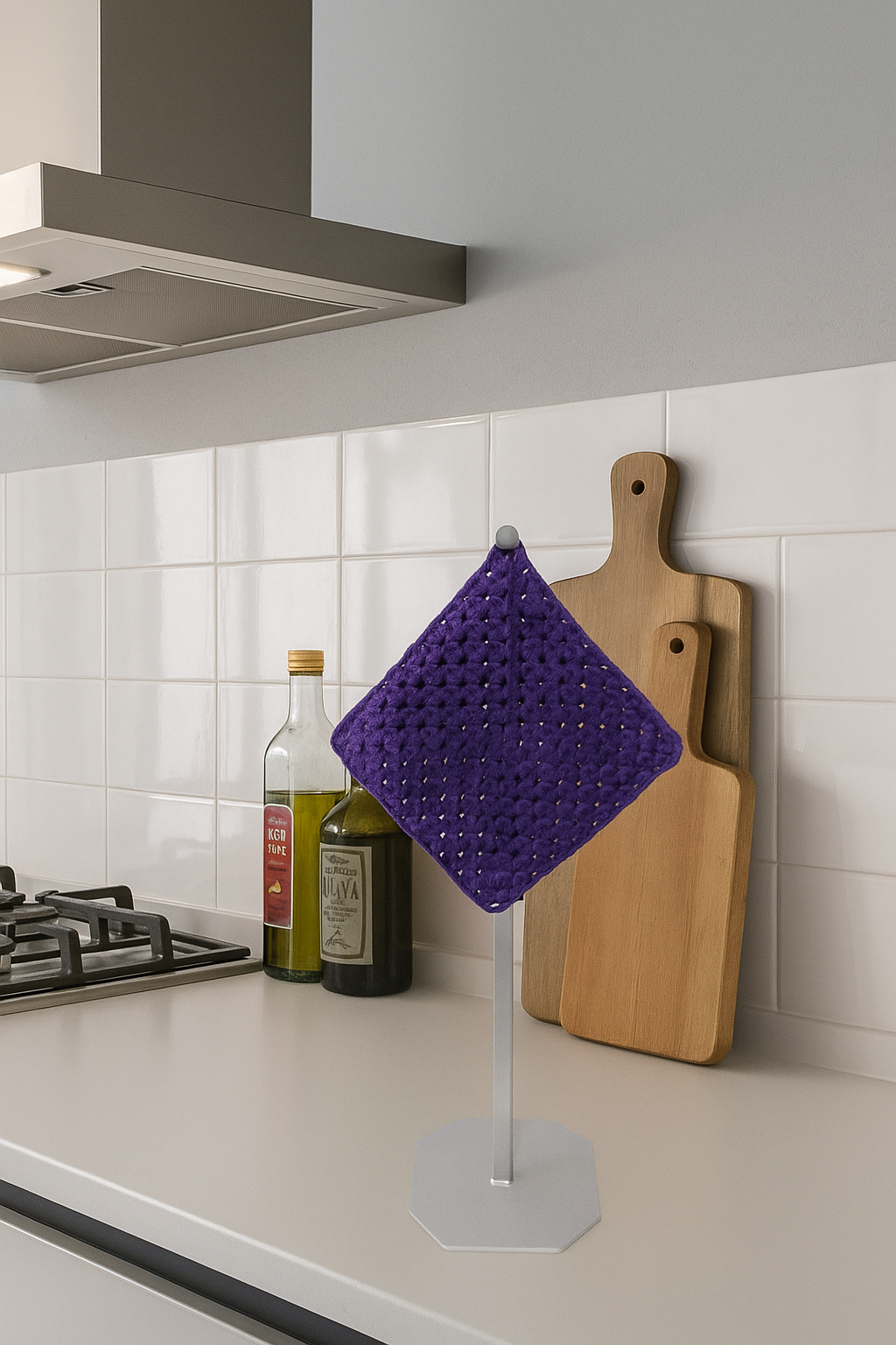 Podés usarla como agarradera, posa pavas o posa fuentes, con la seguridad y el estilo de lo hecho a mano.
