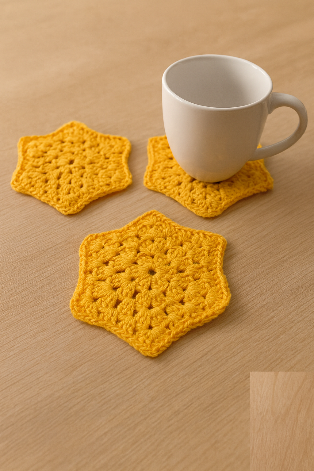 Hechos a mano en hilo de algodón de 6 hebras, son dobles para resistir tanto el calor de una taza de chocolate como la humedad de un vaso frío. Su textura firme protege la mesa sin perder suavidad al tacto.